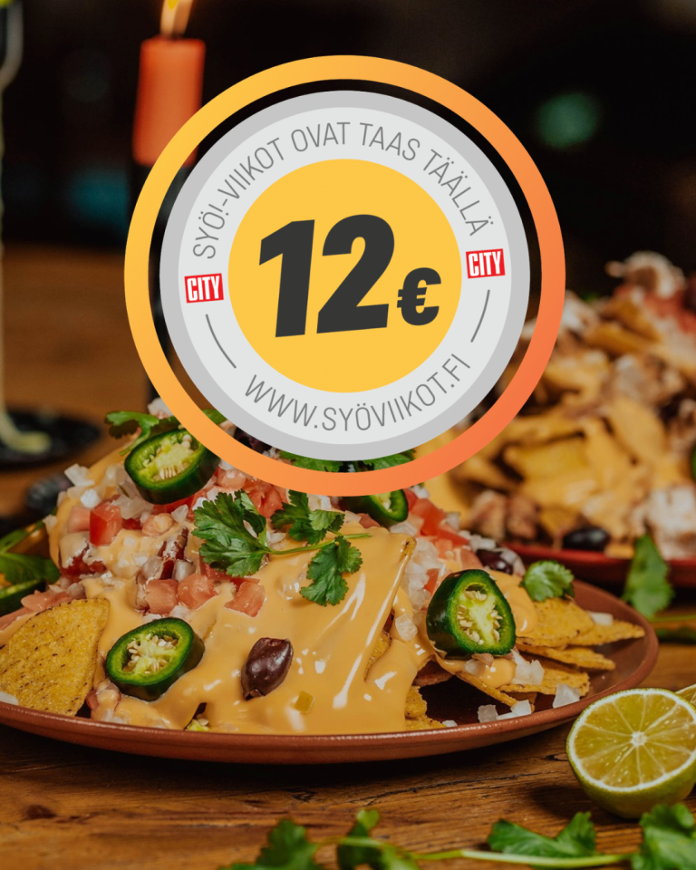 SYÖ!-viikkojen aikana kaikki Nacho-annokset 12€ ja Burritot 15€! Tarjoukset ovat voimassa ma-pe lounaan klo 14 jälkeen ja viikonloppuisin koko päivän. Tervetuloa!